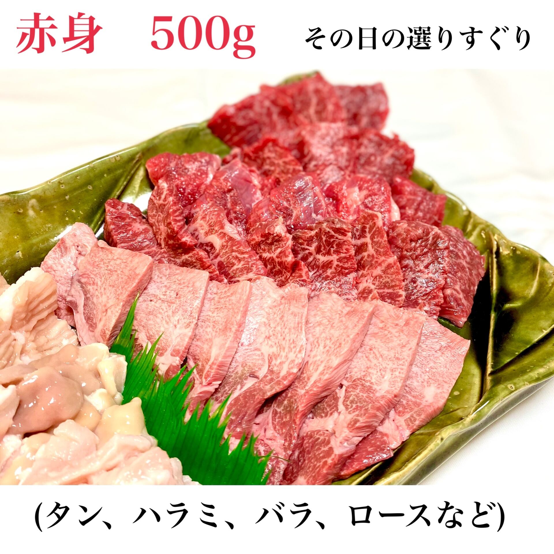 その日の選りすぐりの赤身肉500gとホルモン300g、白菜キムチ350gと焼肉のタレ180mlがついたセットです!