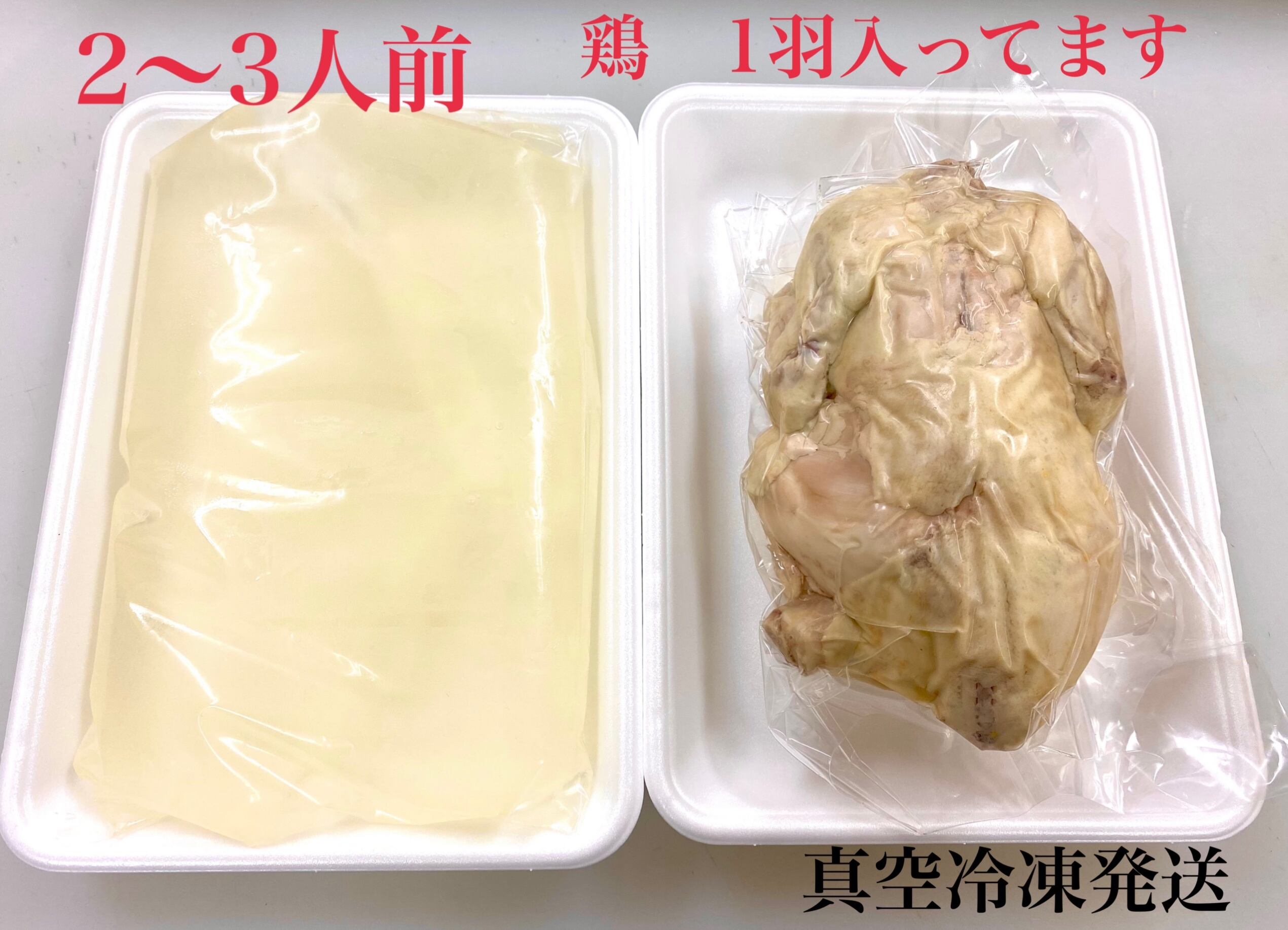 鶏1羽の中にお米、なつめ、高麗人参、ニンニクなどが入っています。2〜3人前で23cmのお鍋たっぷりできます。真空冷凍便にて発送させていただきます。