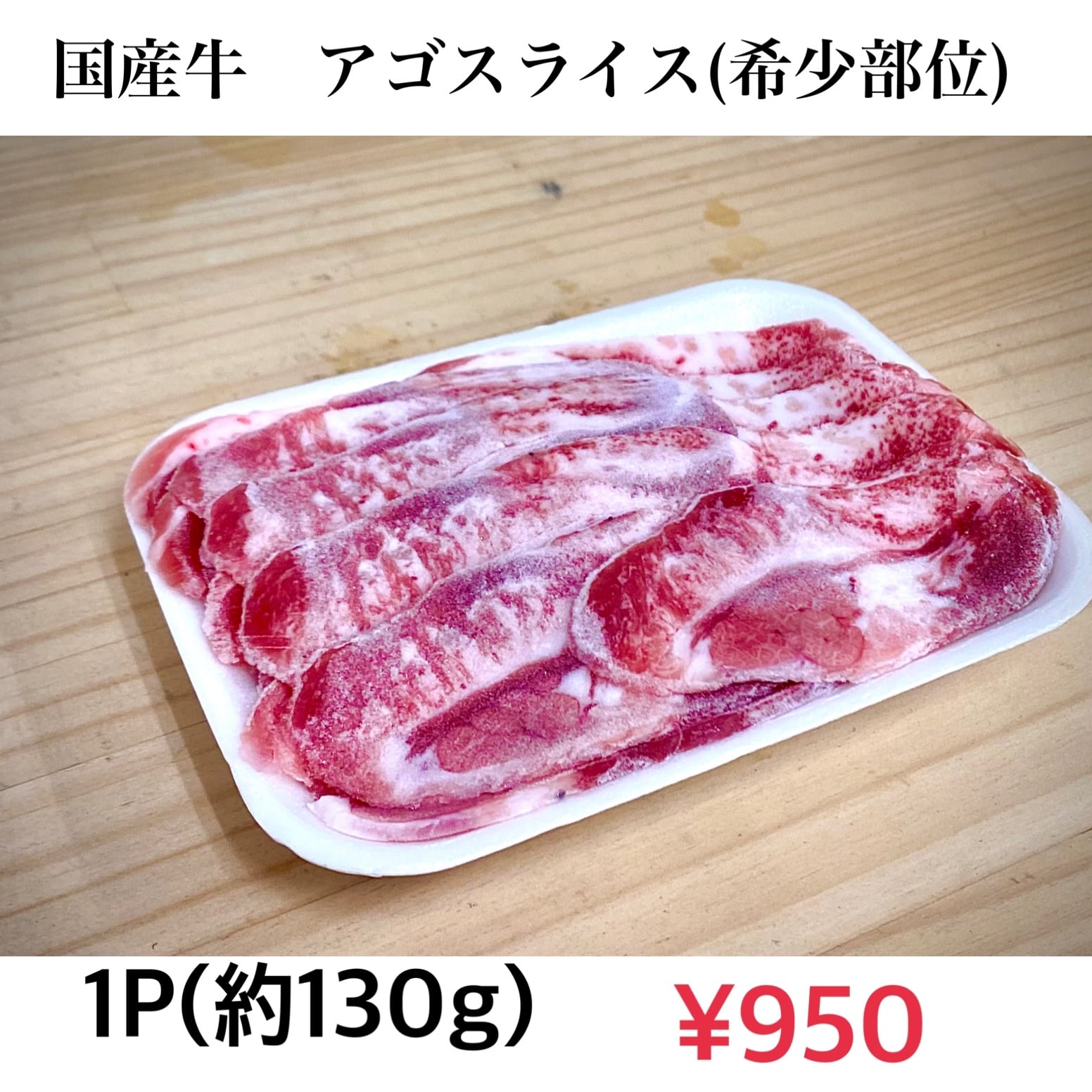 国産牛のアゴスライスです。アゴスジと言われる部分を薄くスライスしています。アゴスライスはなかなか他店で販売していない希少部位です。病みつきになる食感、炒め物、鍋物にゆびきポン酢などにお使いいただけます。希少部位なのである時ない時あります。あるうちに一度お試しください!